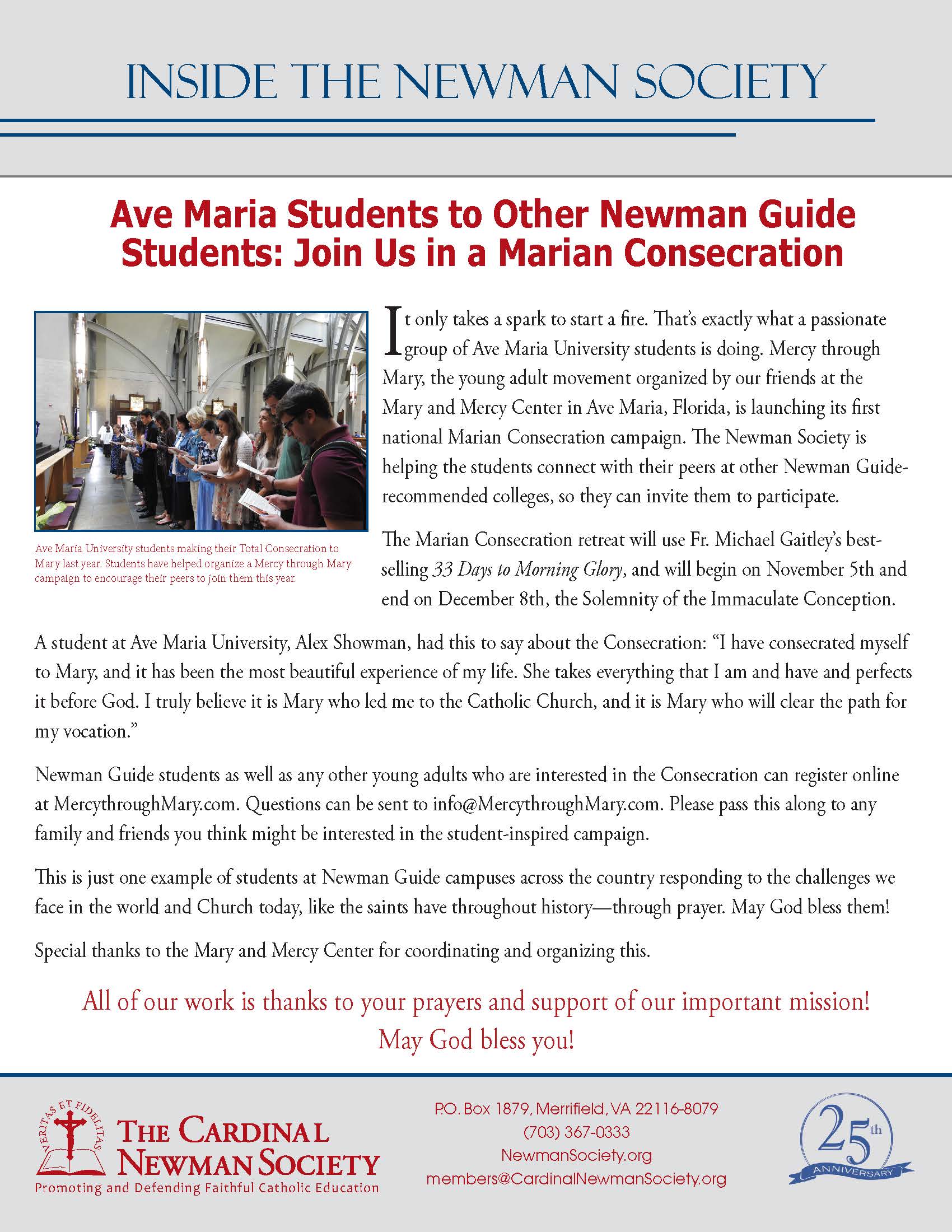 AMU students make their Consecration to Jesus through Mary on March 25, 2019